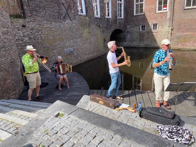 Gerrie, Maurice, Hans, Frans, Huib en Joris weten de aandacht wel te trekken. Het zijn door de wol geverfde muzikanten en spelen blues-rock en southern-rock. New Orleans ligt ineens in de Bossche binnenstad...